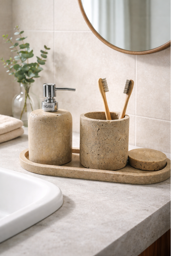 Mermer sunumluk 12x24 cm ebatlarındadır Ayakları gümüş renktir Dilerseniz banyonuzda , dilerseniz mutfak veya sofraları
