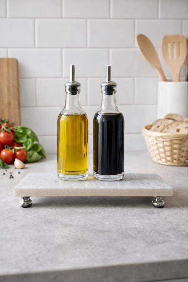 Mermer sunumluk 9x21 cm ebatlarındadır Ayakları gümüş renktir Dilerseniz banyonuzda , dilerseniz mutfak veya sofraların